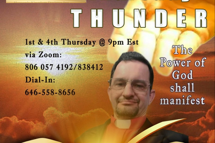 New Things International Ministries with Apostle Samuel Hunt Brings you, Thursday Thunder every 1st and 4th Thurday at 9 Pm EST via Zoom ID 086-057-4192 passcode 838412 dial in 646-558-8656 The Power of God shall Manifest Apostle Hunt is part of the VLFM Family ...