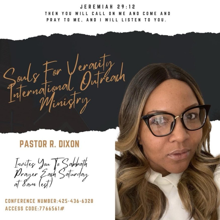 Pastor Dixon is inviting you to a Sabbath prayer each Saturday at 8 am EST